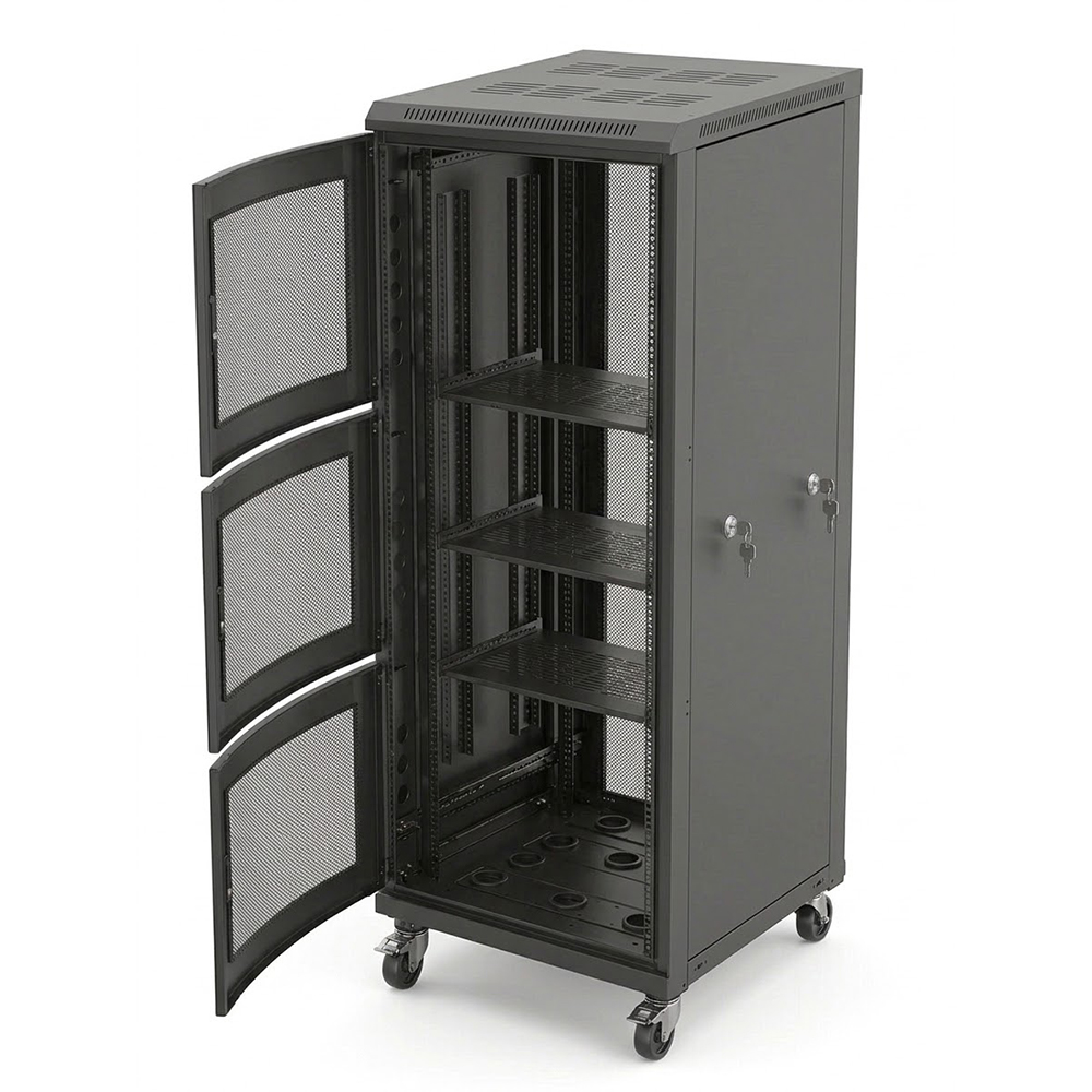 Construit avec un cadre profilé à 9 volets , il offre une résistance structurelle supérieure à celle des racks standard, ce qui le rend idéal pour le déploiement d'équipements haute densité jusqu'à 1 000 kg.